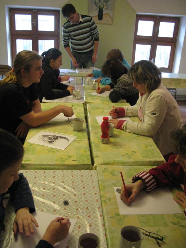 V neděli 19. 2. 2012 se v klubovně v Adventním domě opět sešla skupinka „umělců“, kteří prožili příjemné relaxační odpoledne při výuce kreslení portrétu. Účastníci setkání se věnovali kresbě různých částí obličeje podle živých předloh svých kolegů. Odborný dohled a praktické rady poskytl instruktor Jan Majer. Pohodovou atmosféru setkání podpořila relaxační hudba s šálkem bylinkového čaje.