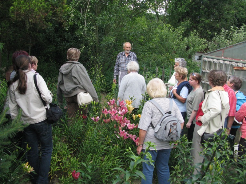 Po skončení přednášky následoval od 15:30 výšlap za pěstitelem květin panem Aloisem Mikyskou. Tentokrát se jednalo o různě barevné druhy lilií. Výšlapu se zúčastnilo více než 20 účastníků, kteří si prošli příjemnou vycházku od autobusového nádraží přes Polanku až do zahradní kolonie Poušov.